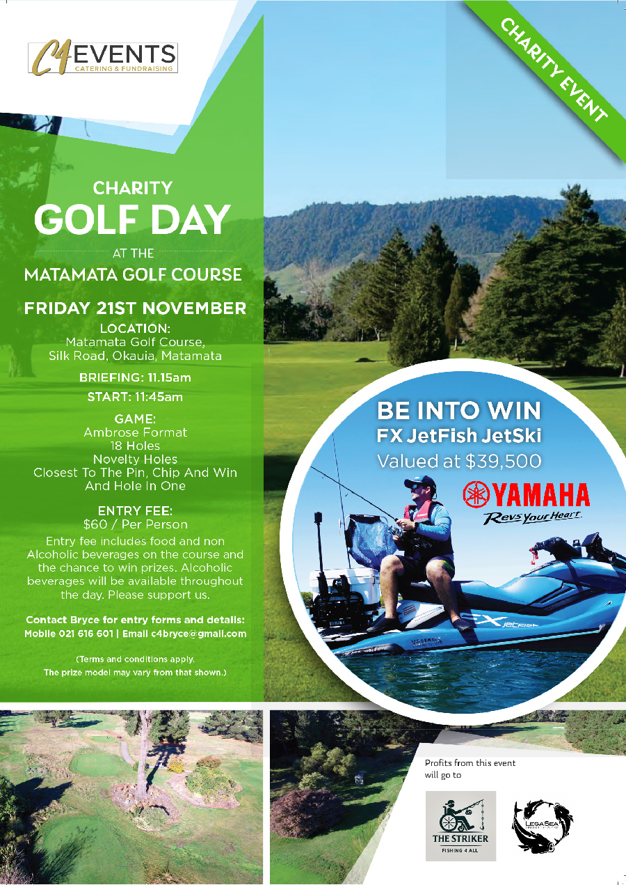 On Friday, 21 November 2025, we're hitting the greens at Matamata Golf Course for a charity golf day supporting two amazing causes – LegaSea (Fish for the People) and The Striker, an accessible fishing apparatus helping more Kiwis experience the joy of fishing.