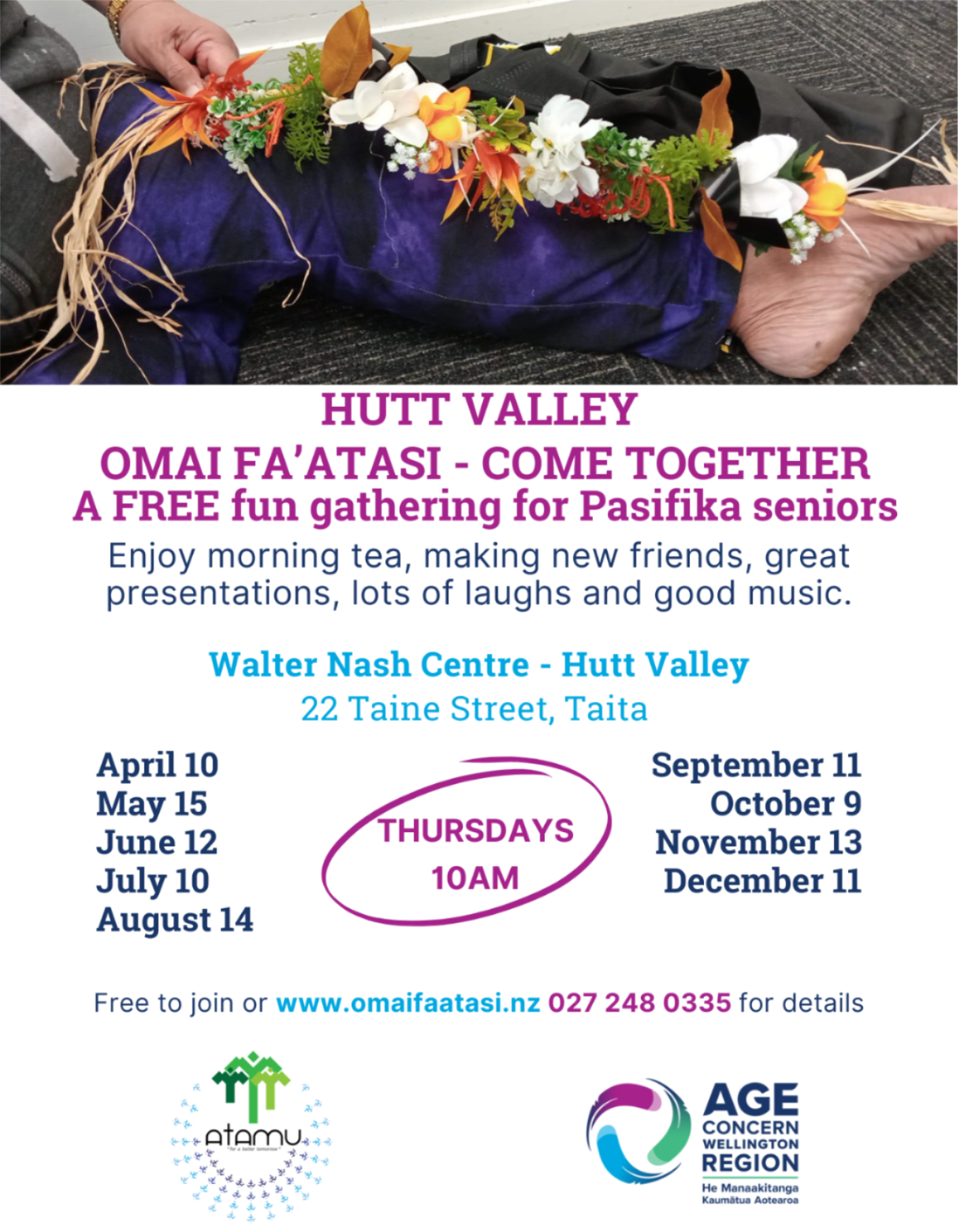 Walter Nash Centre, Taitā, Thursday 1.30pm -