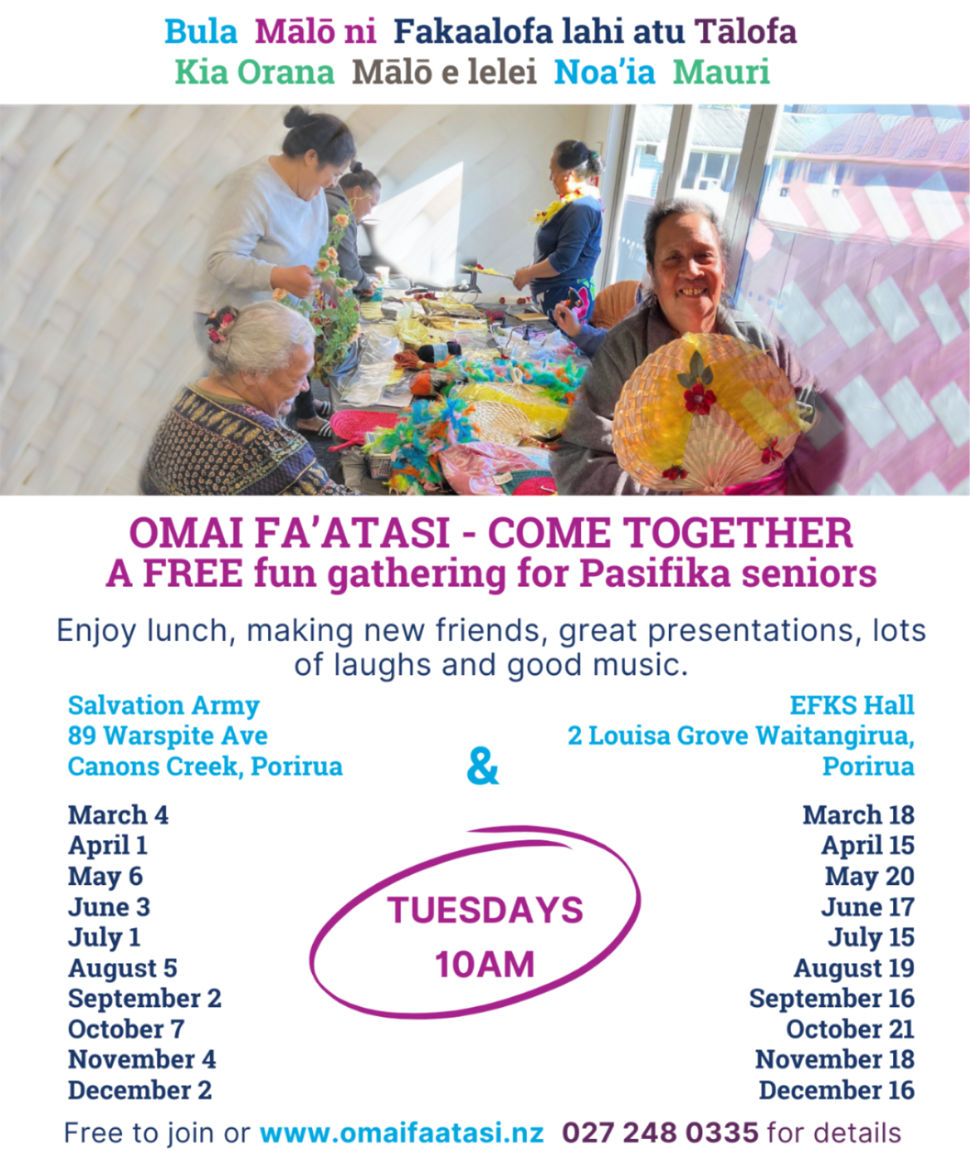 Walter Nash Centre, Taitā, Tuesday 1:30pm