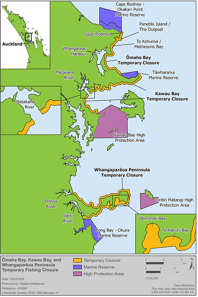 Recently, the Minister for Oceans and Fisheries approved Ngāti Manuhiri's application for a 2-year temporary closure on harvesting seaweed, shellfish, molluscs, and other invertebrate species within Omaha Bay, Kaway Bay and Whangaparāoa Peninsula.