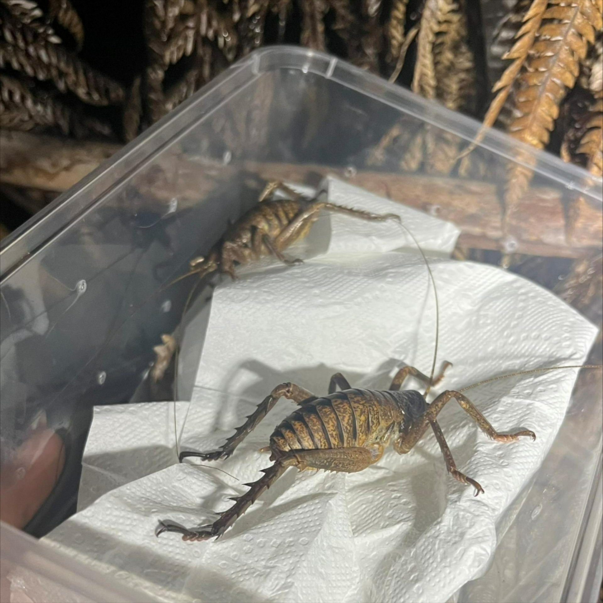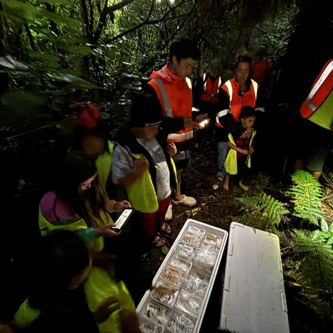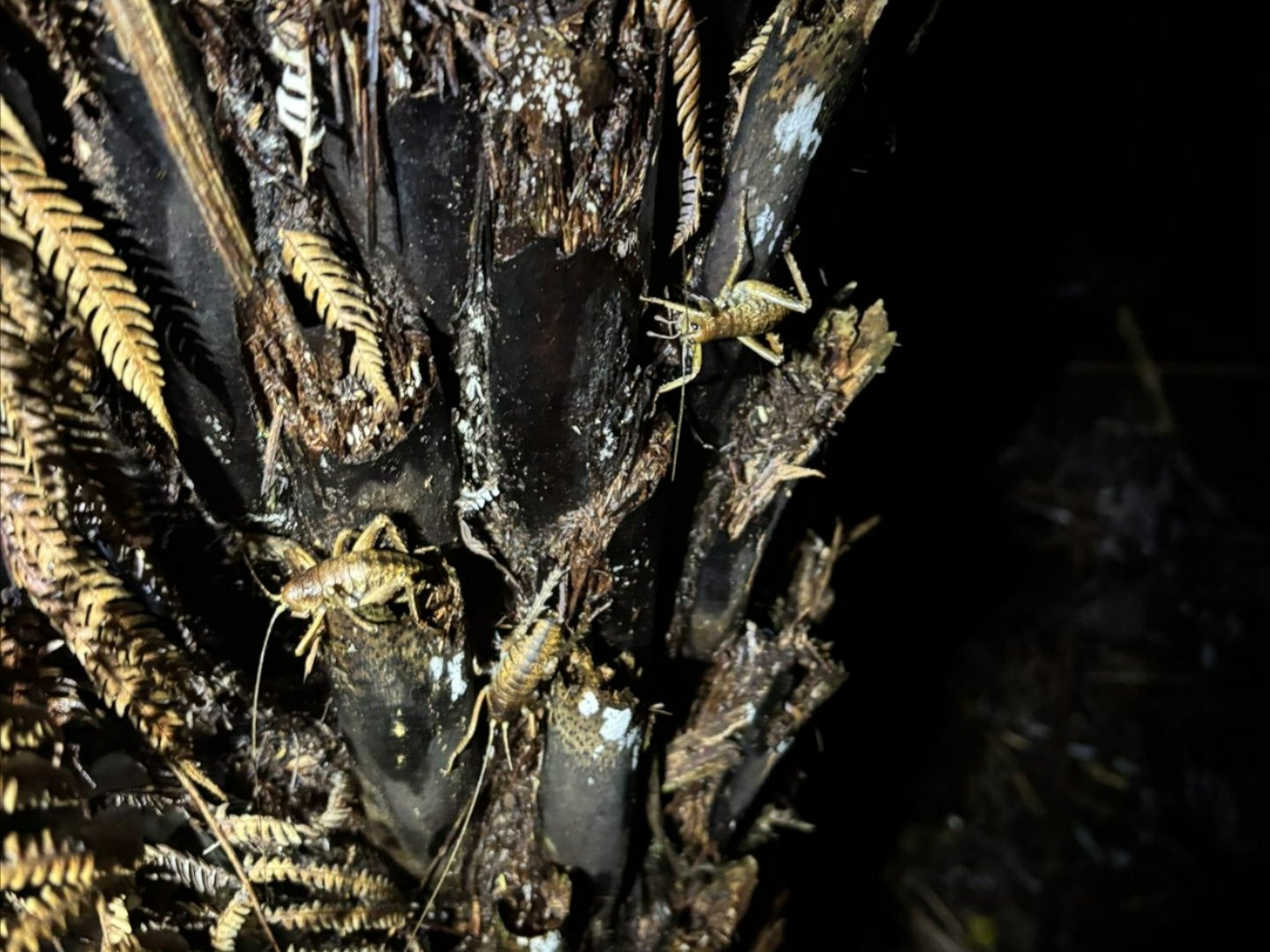 Two nights prior to the release, our team undertook nighttime monitoring work, and were excited to discover numerous adult wētāpunga. This survey provides baseline density data and can be repeated in future years to help track population change (hopefully growth!) over time. |